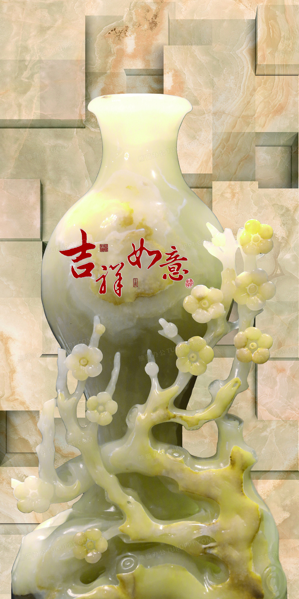 本作品内容为玉雕花瓶玄关, 格式为 psd, 图片尺寸为4252 x 8505, 作品中背景图片无需修改, 源文件无水印,可以直接使用, 欢迎使用熊猫办公。 如认为平台内容涉嫌侵权,可通过邮件:tousu@tukuppt.com提出书面通知,我们将及时处理。