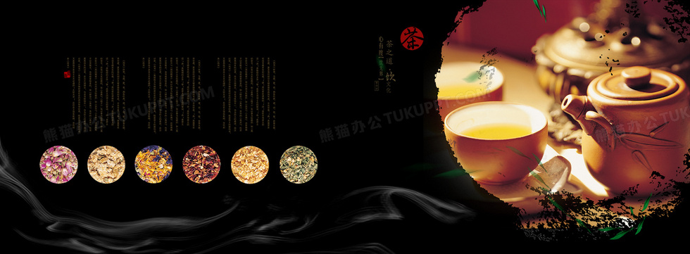 本作品内容为茶文化背景, 格式为 psd, 图片尺寸为1920 x 707, 作品中背景图片无需修改, 源文件无水印,可以直接使用, 欢迎使用熊猫办公。 如认为平台内容涉嫌侵权,可通过邮件:tousu@tukuppt.com提出书面通知,我们将及时处理。
