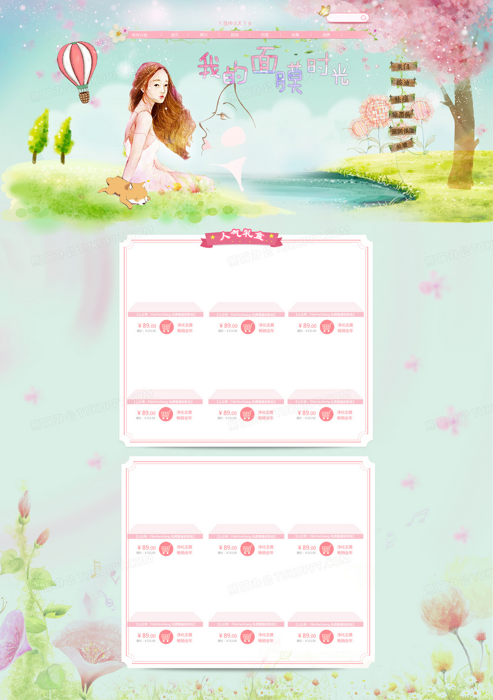 本作品内容为手绘水彩梦幻化妆品店铺首页背景, 格式为 psd, 图片尺寸为1920 x 2728, 作品中背景图片无需修改, 源文件无水印,可以直接使用, 欢迎使用熊猫办公。 如认为平台内容涉嫌侵权,可通过邮件:tousu@tukuppt.com提出书面通知,我们将及时处理。
