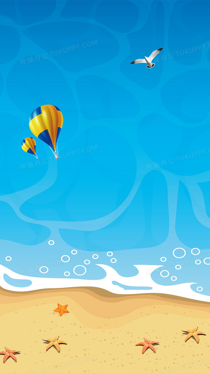 本作品内容为夏季蓝色手绘沙滩海水H5手机背景, 格式为 psd, 图片尺寸为1080 x 1920, 作品中背景图片无需修改, 源文件无水印,可以直接使用, 欢迎使用熊猫办公。 如认为平台内容涉嫌侵权,可通过邮件:tousu@tukuppt.com提出书面通知,我们将及时处理。