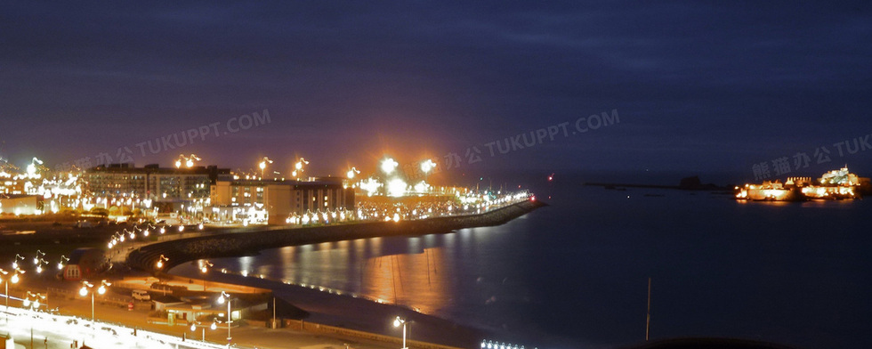 本作品内容为夜晚海边城市灯光背景, 格式为 jpg, 图片尺寸为1920 x 768, 作品中背景图片无需修改, 源文件无水印,可以直接使用, 欢迎使用熊猫办公。 如认为平台内容涉嫌侵权,可通过邮件:tousu@tukuppt.com提出书面通知,我们将及时处理。