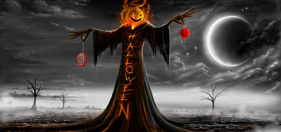 本作品内容为万圣节素材, 格式为 jpg, 图片尺寸为1920 x 900, 作品中背景图片无需修改, 源文件无水印,可以直接使用, 欢迎使用熊猫办公。 如认为平台内容涉嫌侵权,可通过邮件:tousu@tukuppt.com提出书面通知,我们将及时处理。