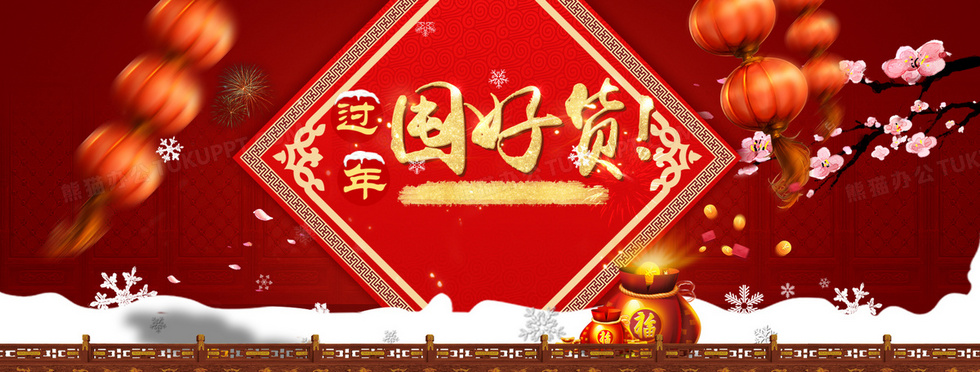 本作品内容为新春屯年货红色海报背景, 格式为 psd, 图片尺寸为1920 x 730, 作品中背景图片无需修改, 源文件无水印,可以直接使用, 欢迎使用熊猫办公。 如认为平台内容涉嫌侵权,可通过邮件:tousu@tukuppt.com提出书面通知,我们将及时处理。
