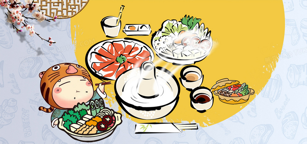 本作品内容为手绘火锅banner图, 格式为 psd, 图片尺寸为1920 x 900, 作品中背景图片无需修改, 源文件无水印,可以直接使用, 欢迎使用熊猫办公。 如认为平台内容涉嫌侵权,可通过邮件:tousu@tukuppt.com提出书面通知,我们将及时处理。