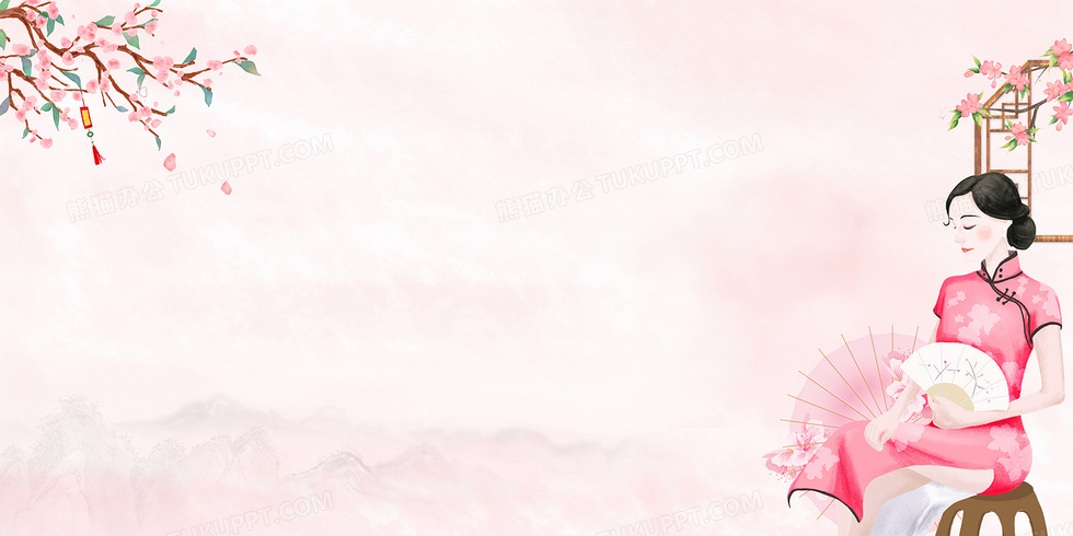 本作品内容为粉色唯美春天古典旗袍美女背景, 格式为 psd, 大小110 MB, 图片尺寸为4724 x 2362, 作品中背景图片无需修改, 源文件无水印,可以直接使用, 欢迎使用熊猫办公。 如认为平台内容涉嫌侵权,可通过邮件:tousu@tukuppt.com提出书面通知,我们将及时处理。