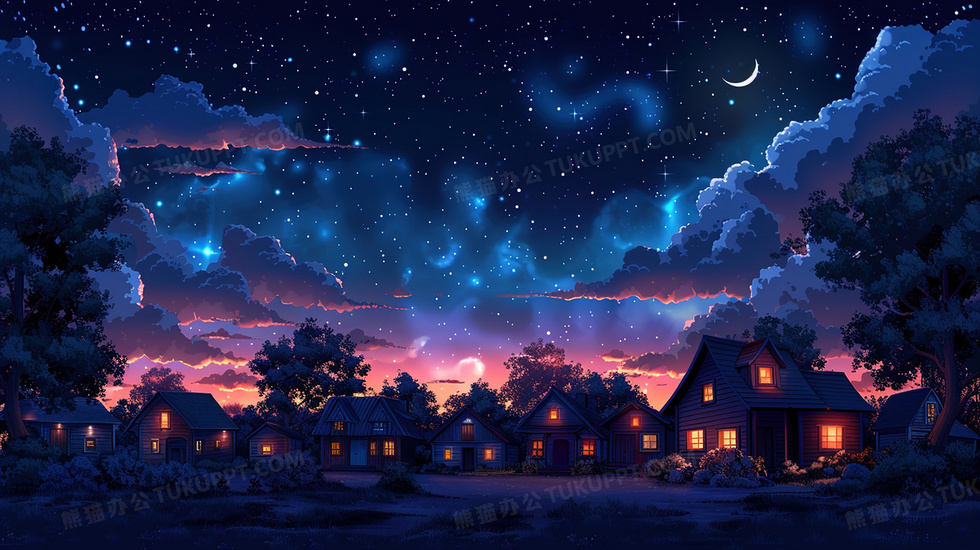 本作品内容为房子星空夜景背景图, 格式为 jpg, 大小3 MB, 图片尺寸为2912 x 1632, 作品中背景图片无需修改, 源文件无水印,可以直接使用, 欢迎使用熊猫办公。 如认为平台内容涉嫌侵权,可通过邮件:tousu@tukuppt.com提出书面通知,我们将及时处理。