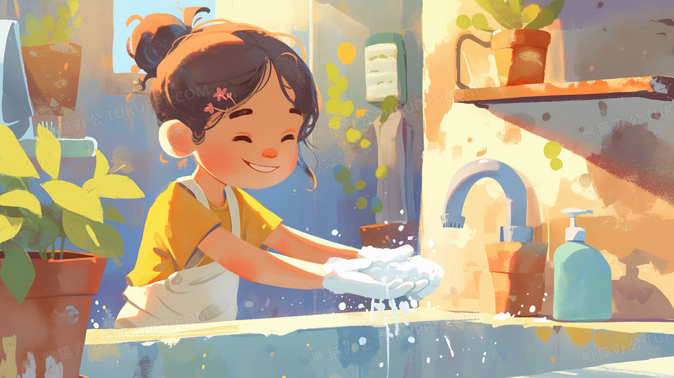 本作品内容为勤洗手的小女孩插画, 格式为 jpg, 大小3 MB, 图片尺寸为2912 x 1632, 源文件无水印, 欢迎使用熊猫办公。 如认为平台内容涉嫌侵权,可通过邮件:tousu@tukuppt.com提出书面通知,我们将及时处理。