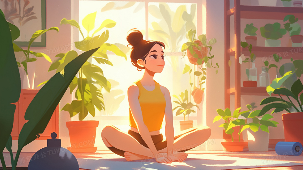 本作品内容为室内运动锻炼瑜伽的青年女性插画, 格式为 jpg, 大小2 MB, 图片尺寸为2912 x 1632, 源文件无水印, 欢迎使用熊猫办公。 如认为平台内容涉嫌侵权,可通过邮件:tousu@tukuppt.com提出书面通知,我们将及时处理。