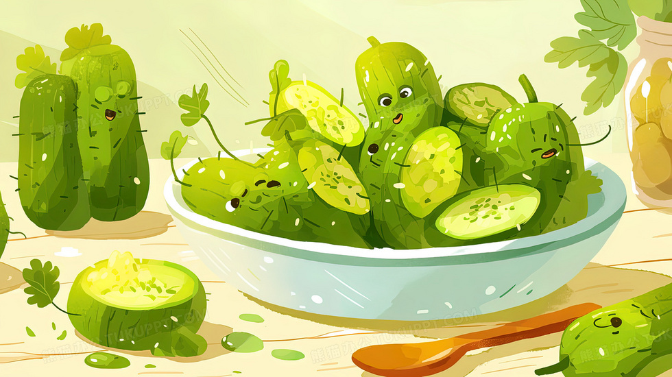 本作品内容为盘中解暑的美食苦瓜插画, 格式为 jpg, 大小5 MB, 图片尺寸为2912 x 1632, 源文件无水印, 欢迎使用熊猫办公。 如认为平台内容涉嫌侵权,可通过邮件:tousu@tukuppt.com提出书面通知,我们将及时处理。