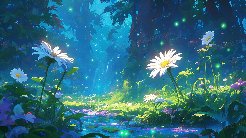 本作品内容为唯美森林绿植小雏菊风景插画, 格式为 jpg, 大小4 MB, 图片尺寸为2912 x 1632, 源文件无水印, 欢迎使用熊猫办公。 如认为平台内容涉嫌侵权,可通过邮件:tousu@tukuppt.com提出书面通知,我们将及时处理。