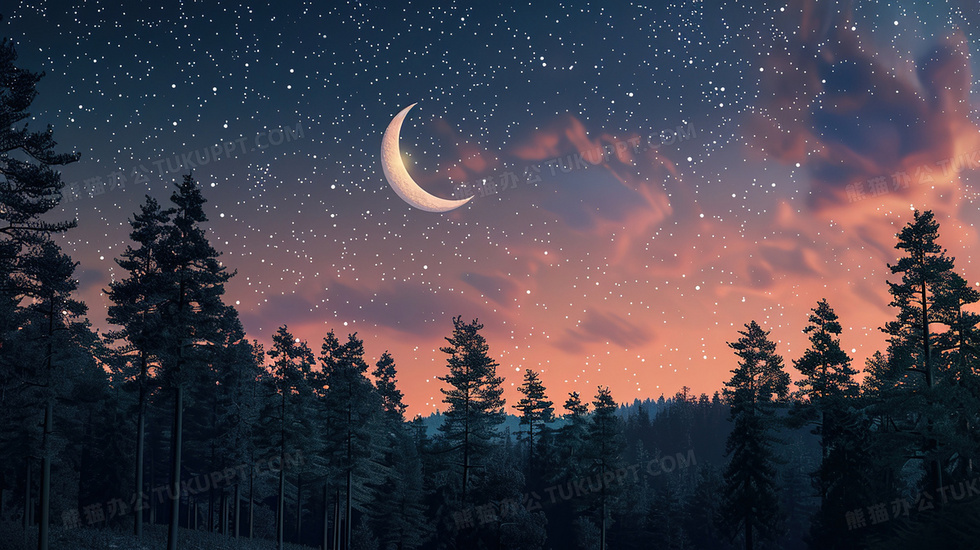 本作品内容为唯美浪漫夜色星空下的森林插画, 格式为 jpg, 大小3 MB, 图片尺寸为2912 x 1632, 源文件无水印, 欢迎使用熊猫办公。 如认为平台内容涉嫌侵权,可通过邮件:tousu@tukuppt.com提出书面通知,我们将及时处理。