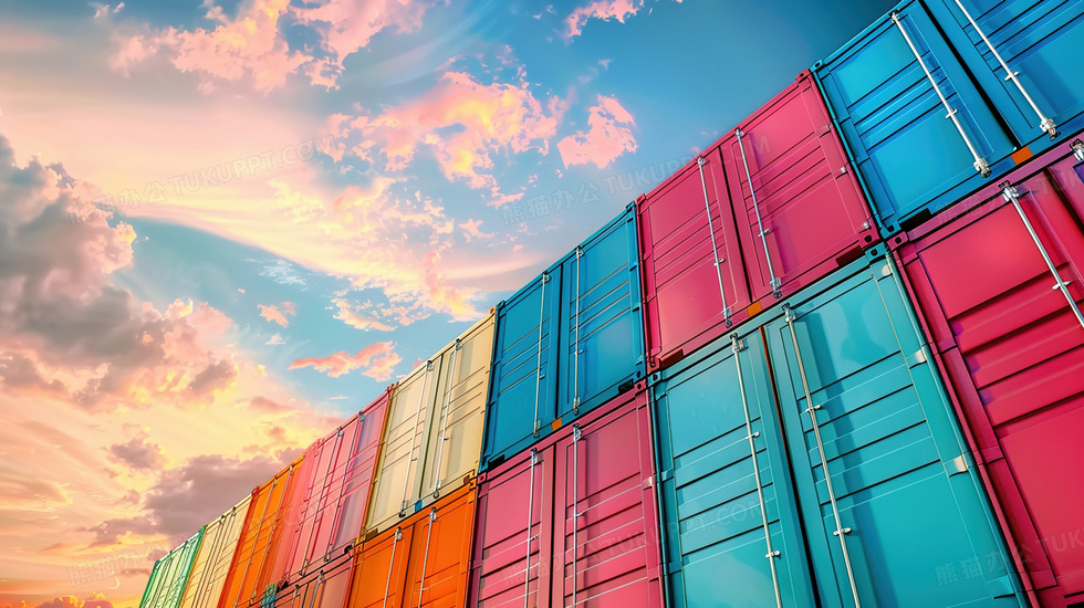 本作品内容为彩色集装箱货物运输背景, 格式为 jpg, 大小3 MB, 图片尺寸为2912 x 1632, 作品中背景图片无需修改, 源文件无水印,可以直接使用, 欢迎使用熊猫办公。 如认为平台内容涉嫌侵权,可通过邮件:tousu@tukuppt.com提出书面通知,我们将及时处理。