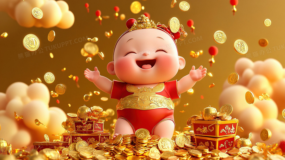 本作品内容为新年喜庆送财童子插画, 格式为 jpg, 大小3 MB, 图片尺寸为2912 x 1632, 源文件无水印, 欢迎使用熊猫办公。 如认为平台内容涉嫌侵权,可通过邮件:tousu@tukuppt.com提出书面通知,我们将及时处理。