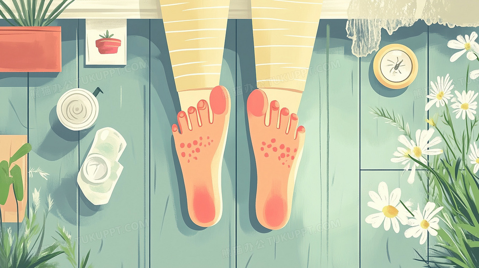 本作品内容为患皮肤病的双脚插画, 格式为 jpg, 大小3 MB, 图片尺寸为2912 x 1632, 源文件无水印, 欢迎使用熊猫办公。 如认为平台内容涉嫌侵权,可通过邮件:tousu@tukuppt.com提出书面通知,我们将及时处理。