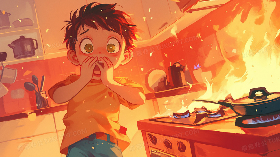 本作品内容为家里厨房着火惊恐逃生的男孩插画, 格式为 jpg, 大小3 MB, 图片尺寸为2912 x 1632, 源文件无水印, 欢迎使用熊猫办公。 如认为平台内容涉嫌侵权,可通过邮件:tousu@tukuppt.com提出书面通知,我们将及时处理。