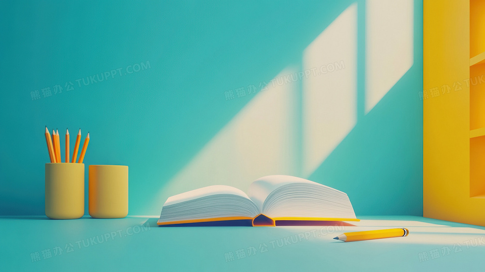 本作品内容为书本文具教育文化C4D立体简约背景, 格式为 jpg, 大小3 MB, 图片尺寸为2912 x 1632, 作品中背景图片无需修改, 源文件无水印,可以直接使用, 欢迎使用熊猫办公。 如认为平台内容涉嫌侵权,可通过邮件:tousu@tukuppt.com提出书面通知,我们将及时处理。