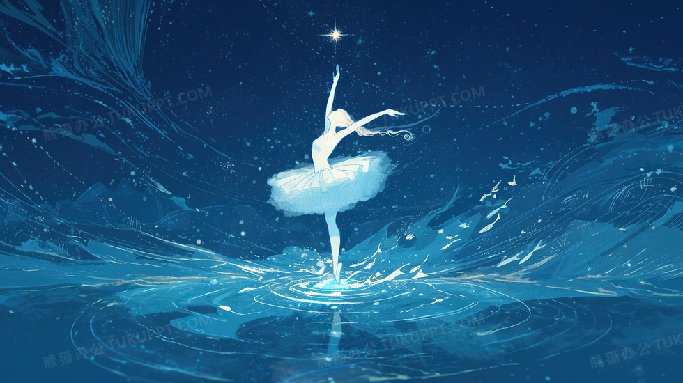 本作品内容为蓝色星空女孩跳芭蕾舞唯美插画, 格式为 jpg, 大小3 MB, 图片尺寸为2912 x 1632, 源文件无水印, 欢迎使用熊猫办公。 如认为平台内容涉嫌侵权,可通过邮件:tousu@tukuppt.com提出书面通知,我们将及时处理。