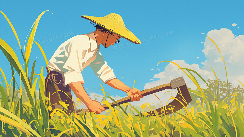 本作品内容为农田里农民锄头锄地耕作劳动插画, 格式为 jpg, 大小4 MB, 图片尺寸为2912 x 1632, 源文件无水印, 欢迎使用熊猫办公。 如认为平台内容涉嫌侵权,可通过邮件:tousu@tukuppt.com提出书面通知,我们将及时处理。