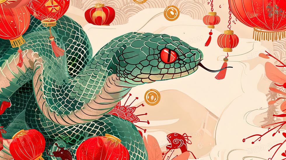 本作品内容为蛇年水墨灯笼花卉与青蛇插画, 格式为 jpg, 大小4 MB, 图片尺寸为2912 x 1632, 源文件无水印, 欢迎使用熊猫办公。 如认为平台内容涉嫌侵权,可通过邮件:tousu@tukuppt.com提出书面通知,我们将及时处理。
