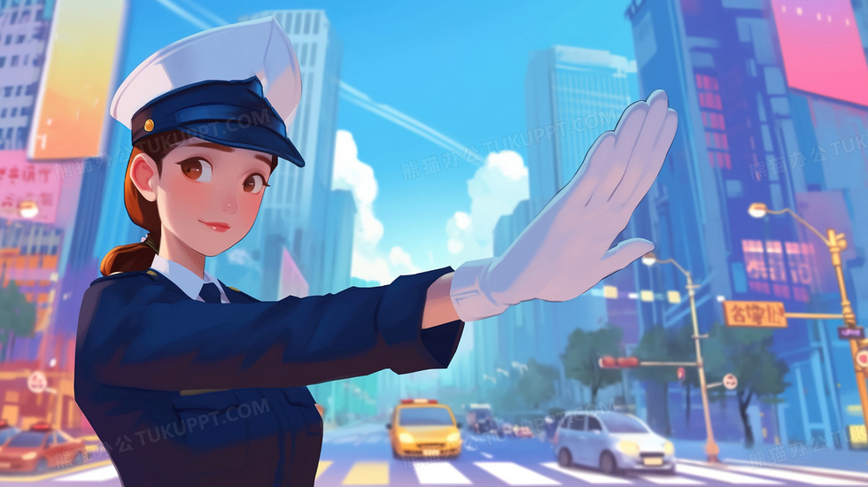 本作品内容为道路中心指挥交通的女交警插画, 格式为 jpg, 大小2 MB, 图片尺寸为2912 x 1632, 源文件无水印, 欢迎使用熊猫办公。 如认为平台内容涉嫌侵权,可通过邮件:tousu@tukuppt.com提出书面通知,我们将及时处理。