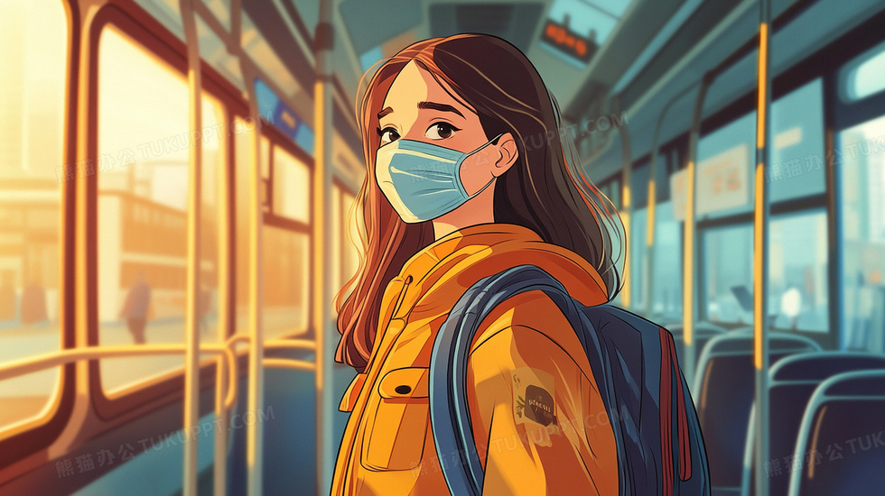 本作品内容为女孩公交车戴口罩生病预防肺炎插画, 格式为 jpg, 大小3 MB, 图片尺寸为2912 x 1632, 源文件无水印, 欢迎使用熊猫办公。 如认为平台内容涉嫌侵权,可通过邮件:tousu@tukuppt.com提出书面通知,我们将及时处理。