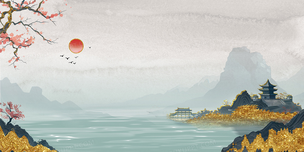 本作品内容为传统中国风鎏金山水国画意境水墨背景, 格式为 psd, 大小75 MB, 图片尺寸为4724 x 2362, 作品中背景图片无需修改, 源文件无水印,可以直接使用, 欢迎使用熊猫办公。 如认为平台内容涉嫌侵权,可通过邮件:tousu@tukuppt.com提出书面通知,我们将及时处理。