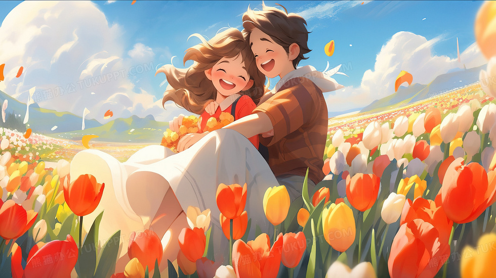 本作品内容为卡通清新七夕郁金香男孩女孩拥抱插画, 格式为 jpg, 大小3 MB, 图片尺寸为2912 x 1632, 源文件无水印, 欢迎使用熊猫办公。 如认为平台内容涉嫌侵权,可通过邮件:tousu@tukuppt.com提出书面通知,我们将及时处理。