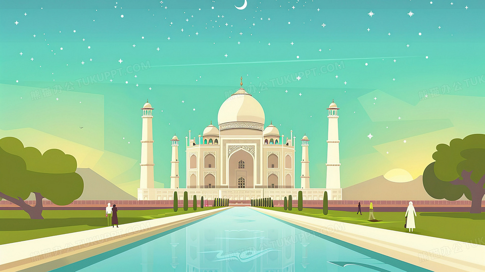 本作品内容为泰姬陵的夜景简约插画, 格式为 jpg, 大小2 MB, 图片尺寸为2912 x 1632, 源文件无水印, 欢迎使用熊猫办公。 如认为平台内容涉嫌侵权,可通过邮件:tousu@tukuppt.com提出书面通知,我们将及时处理。