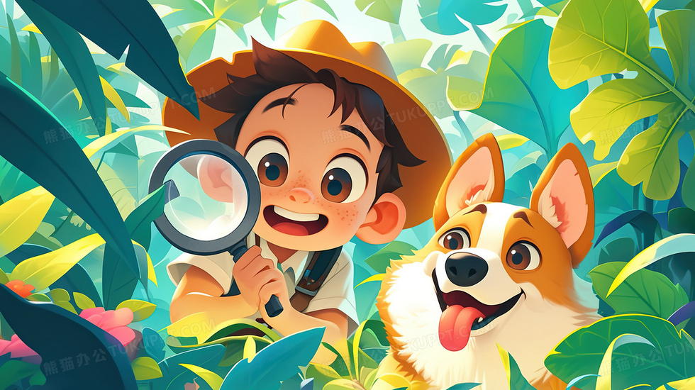 本作品内容为卡通小男孩森林探险夏令营插画, 格式为 jpg, 大小3 MB, 图片尺寸为2912 x 1632, 源文件无水印, 欢迎使用熊猫办公。 如认为平台内容涉嫌侵权,可通过邮件:tousu@tukuppt.com提出书面通知,我们将及时处理。