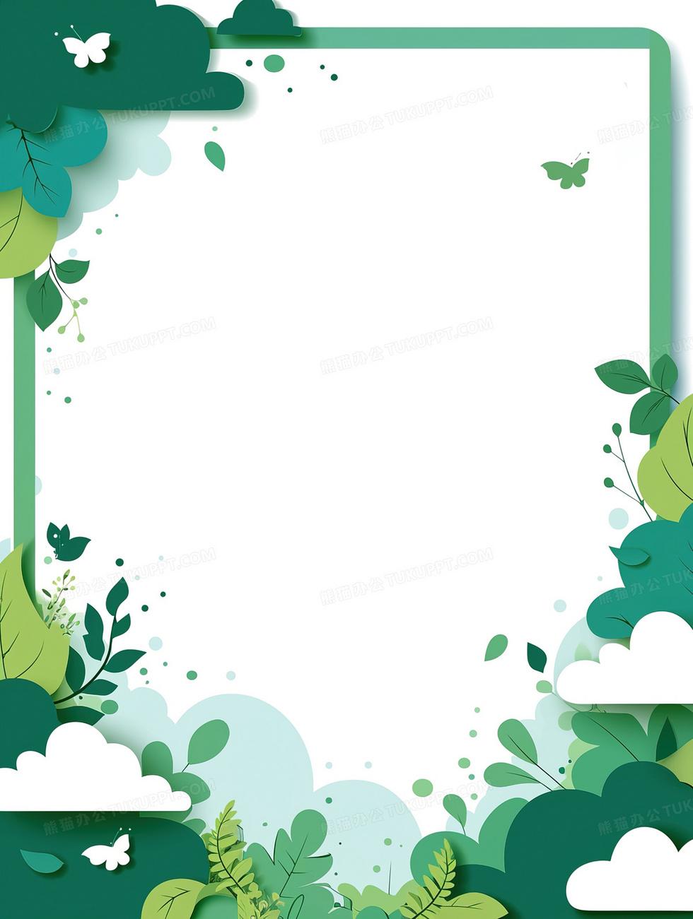 本作品内容为简约绿植边框剪纸风背景, 格式为 jpg, 大小1 MB, 图片尺寸为1856 x 2464, 作品中背景图片无需修改, 源文件无水印,可以直接使用, 欢迎使用熊猫办公。 如认为平台内容涉嫌侵权,可通过邮件:tousu@tukuppt.com提出书面通知,我们将及时处理。