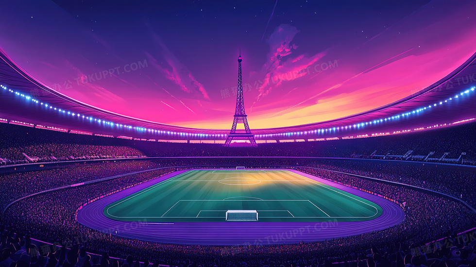 本作品内容为浪漫唯美风法国巴黎法兰西体育场的插画, 格式为 jpg, 大小4 MB, 图片尺寸为2912 x 1632, 源文件无水印, 欢迎使用熊猫办公。 如认为平台内容涉嫌侵权,可通过邮件:tousu@tukuppt.com提出书面通知,我们将及时处理。