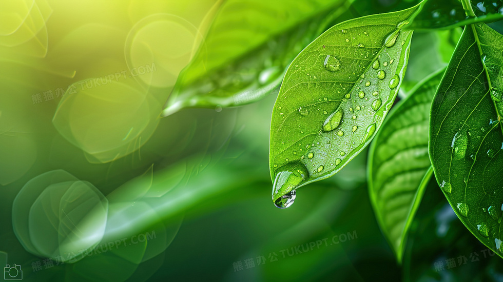 本作品内容为树叶上水滴滴落特写的虚化背景, 格式为 jpg, 大小3 MB, 图片尺寸为2912 x 1632, 作品中背景图片无需修改, 源文件无水印,可以直接使用, 欢迎使用熊猫办公。 如认为平台内容涉嫌侵权,可通过邮件:tousu@tukuppt.com提出书面通知,我们将及时处理。