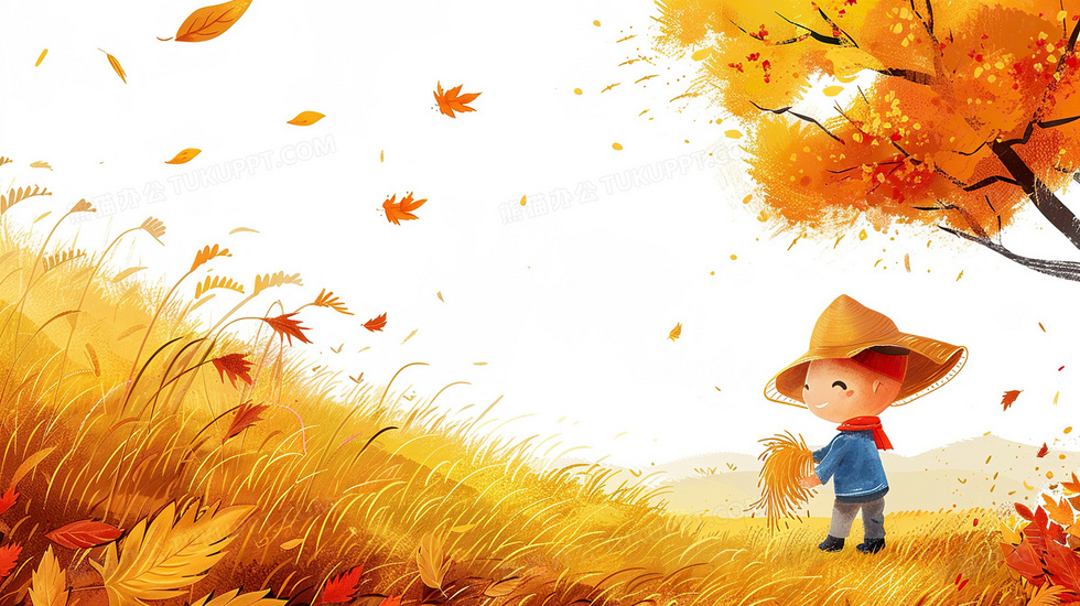 本作品内容为卡通秋天金黄麦田人物背景, 格式为 jpg, 大小3 MB, 图片尺寸为2912 x 1632, 作品中背景图片无需修改, 源文件无水印,可以直接使用, 欢迎使用熊猫办公。 如认为平台内容涉嫌侵权,可通过邮件:tousu@tukuppt.com提出书面通知,我们将及时处理。