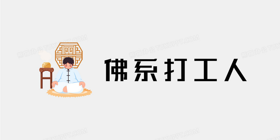 本作品内容为卡通简约佛系打工人桌面壁纸, 格式为 psd, 大小1 MB, 图片尺寸为4724 x 2362, 作品中背景图片无需修改, 源文件无水印,可以直接使用, 欢迎使用熊猫办公。 如认为平台内容涉嫌侵权,可通过邮件:tousu@tukuppt.com提出书面通知,我们将及时处理。