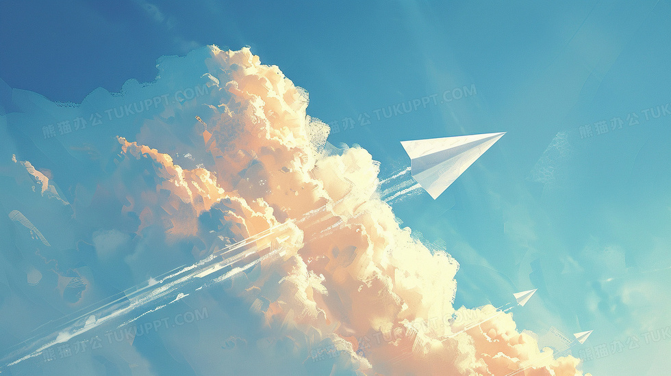 本作品内容为蓝天白云纸飞机卡通简约背景, 格式为 jpg, 大小4 MB, 图片尺寸为2912 x 1632, 作品中背景图片无需修改, 源文件无水印,可以直接使用, 欢迎使用熊猫办公。 如认为平台内容涉嫌侵权,可通过邮件:tousu@tukuppt.com提出书面通知,我们将及时处理。