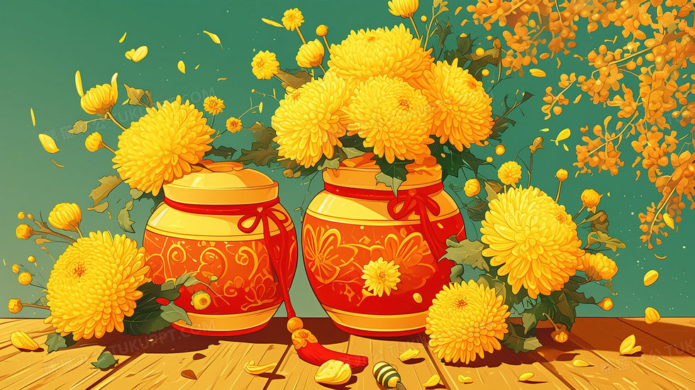 本作品内容为秋季桌面上的菊花蜂蜜罐插画, 格式为 jpg, 大小3 MB, 图片尺寸为2912 x 1632, 源文件无水印, 欢迎使用熊猫办公。 如认为平台内容涉嫌侵权,可通过邮件:tousu@tukuppt.com提出书面通知,我们将及时处理。