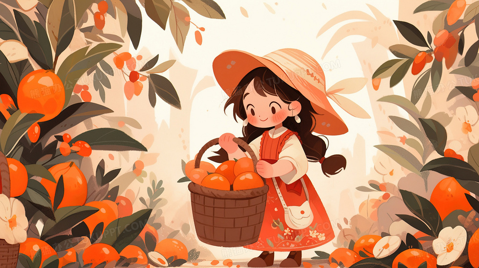 首页 > 插画 > 科技艺术 > 卡通漫画 > 卡通秋日白露节气女孩摘果实插画
