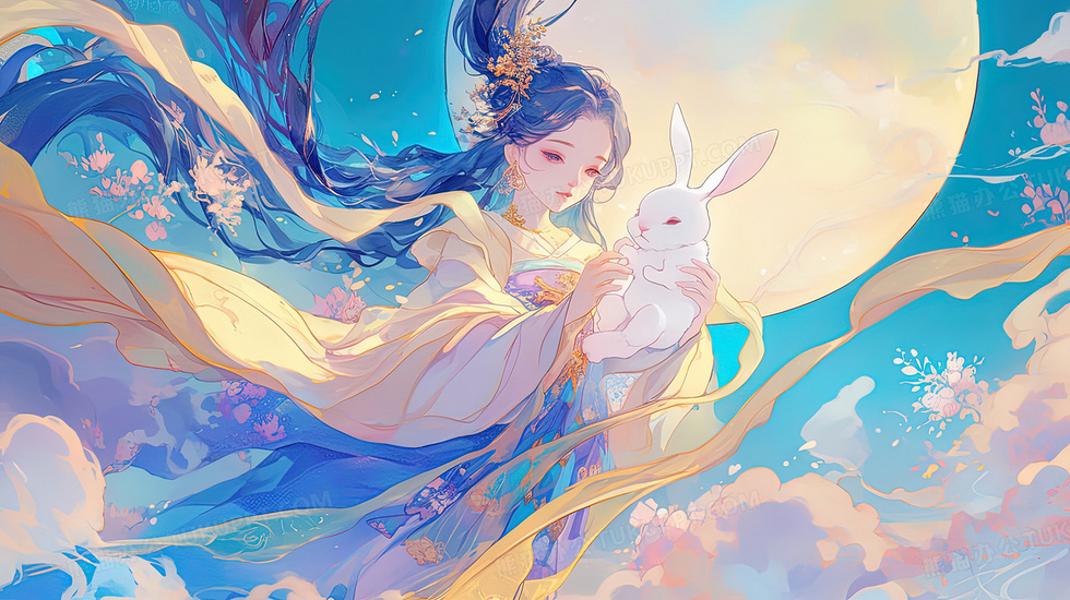 本作品内容为中秋嫦娥仙子抱着月兔奔月插画, 格式为 jpg, 大小3 MB, 图片尺寸为2912 x 1632, 源文件无水印, 欢迎使用熊猫办公。 如认为平台内容涉嫌侵权,可通过邮件:tousu@tukuppt.com提出书面通知,我们将及时处理。