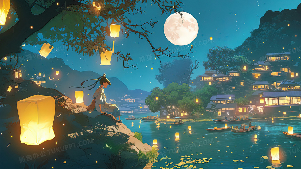 本作品内容为夜晚坐木船上放河灯的少女插画, 格式为 jpg, 大小3 MB, 图片尺寸为2912 x 1632, 源文件无水印, 欢迎使用熊猫办公。 如认为平台内容涉嫌侵权,可通过邮件:tousu@tukuppt.com提出书面通知,我们将及时处理。