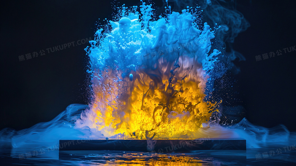 本作品内容为黄蓝渐变飞溅粉末简约背景, 格式为 jpg, 大小3 MB, 图片尺寸为2912 x 1632, 作品中背景图片无需修改, 源文件无水印,可以直接使用, 欢迎使用熊猫办公。 如认为平台内容涉嫌侵权,可通过邮件:tousu@tukuppt.com提出书面通知,我们将及时处理。