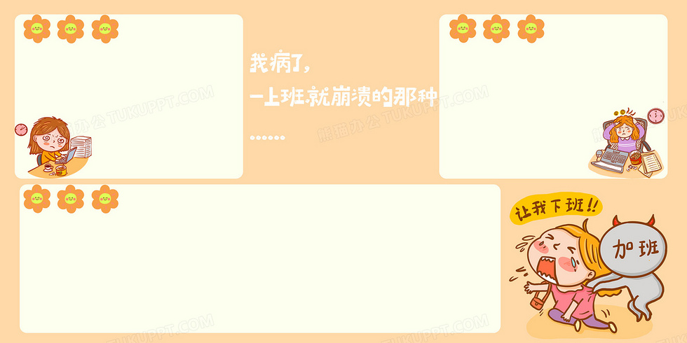 本作品内容为黄色手绘卡通加班电脑待机壁纸, 格式为 psd, 大小4 MB, 图片尺寸为4722 x 2361, 作品中背景图片无需修改, 源文件无水印,可以直接使用, 欢迎使用熊猫办公。 如认为平台内容涉嫌侵权,可通过邮件:tousu@tukuppt.com提出书面通知,我们将及时处理。
