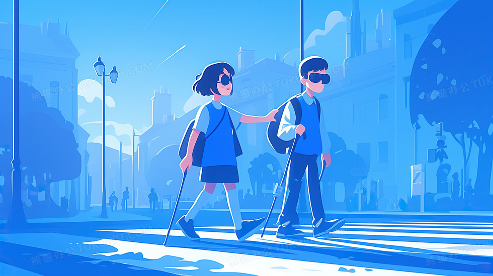 本作品内容为蓝色卡通过马路的盲人插画, 格式为 jpg, 大小3 MB, 图片尺寸为2912 x 1632, 源文件无水印, 欢迎使用熊猫办公。 如认为平台内容涉嫌侵权,可通过邮件:tousu@tukuppt.com提出书面通知,我们将及时处理。