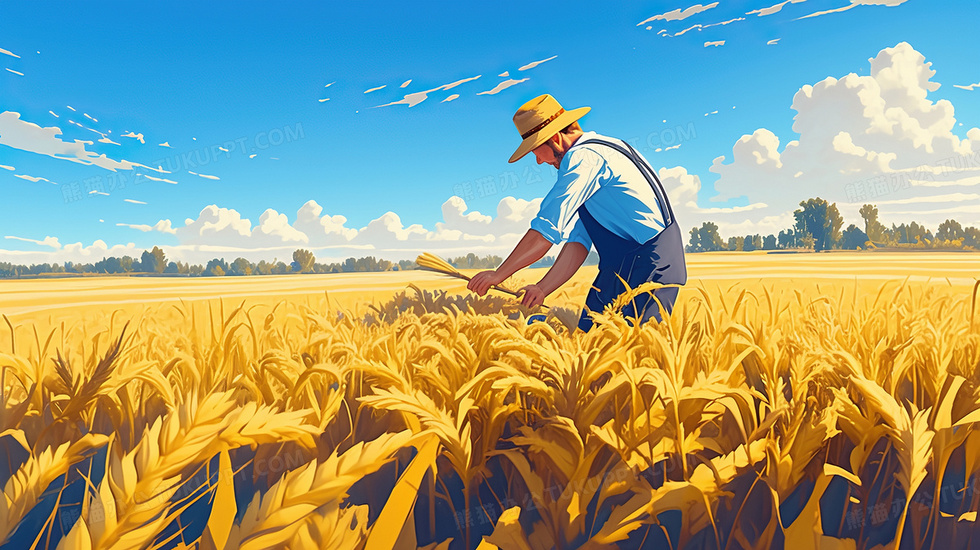 本作品内容为秋天丰收农民割麦子插画, 格式为 jpg, 大小3 MB, 图片尺寸为2912 x 1632, 源文件无水印, 欢迎使用熊猫办公。 如认为平台内容涉嫌侵权,可通过邮件:tousu@tukuppt.com提出书面通知,我们将及时处理。