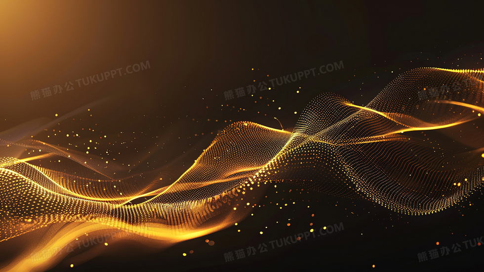 本作品内容为创意金色波浪粒子背景, 格式为 jpg, 大小3 MB, 图片尺寸为2912 x 1632, 作品中背景图片无需修改, 源文件无水印,可以直接使用, 欢迎使用熊猫办公。 如认为平台内容涉嫌侵权,可通过邮件:tousu@tukuppt.com提出书面通知,我们将及时处理。