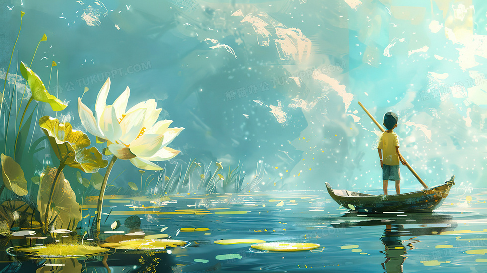 本作品内容为荷花池中划船的小男孩插画, 格式为 jpg, 大小4 MB, 图片尺寸为2912 x 1632, 源文件无水印, 欢迎使用熊猫办公。 如认为平台内容涉嫌侵权,可通过邮件:tousu@tukuppt.com提出书面通知,我们将及时处理。