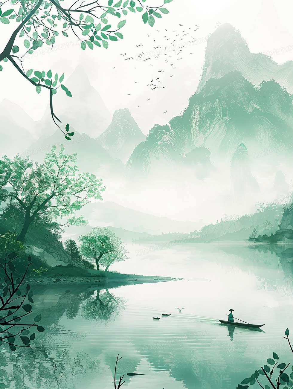 本作品内容为青山绿水的湖中小船插画, 格式为 jpg, 大小3 MB, 图片尺寸为1856 x 2464, 源文件无水印, 欢迎使用熊猫办公。 如认为平台内容涉嫌侵权,可通过邮件:tousu@tukuppt.com提出书面通知,我们将及时处理。