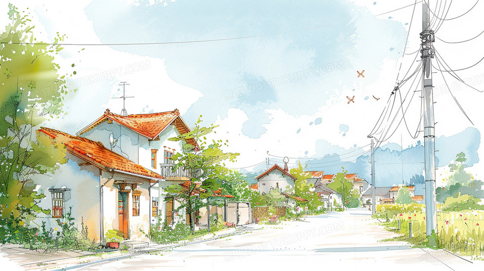 本作品内容为农村风景水彩手绘插画, 格式为 jpg, 大小4 MB, 图片尺寸为2912 x 1632, 源文件无水印, 欢迎使用熊猫办公。 如认为平台内容涉嫌侵权,可通过邮件:tousu@tukuppt.com提出书面通知,我们将及时处理。