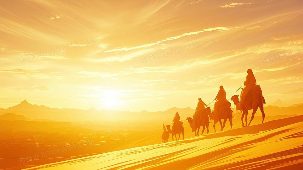 本作品内容为骆驼夕阳黄昏沙漠风景背景, 格式为 jpg, 大小3 MB, 图片尺寸为2912 x 1632, 作品中背景图片无需修改, 源文件无水印,可以直接使用, 欢迎使用熊猫办公。 如认为平台内容涉嫌侵权,可通过邮件:tousu@tukuppt.com提出书面通知,我们将及时处理。