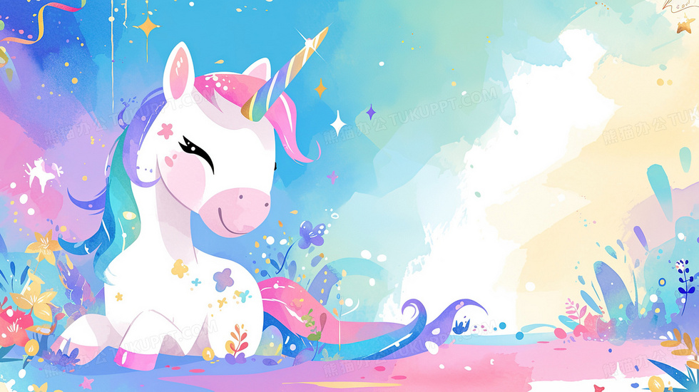 本作品内容为彩色可爱梦幻独角兽背景, 格式为 jpg, 大小3 MB, 图片尺寸为2912 x 1632, 作品中背景图片无需修改, 源文件无水印,可以直接使用, 欢迎使用熊猫办公。 如认为平台内容涉嫌侵权,可通过邮件:tousu@tukuppt.com提出书面通知,我们将及时处理。