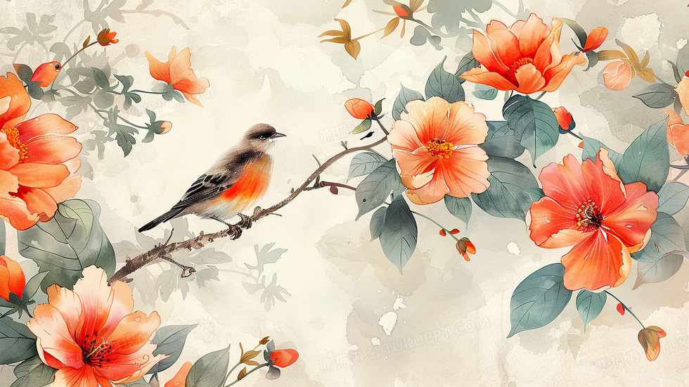 本作品内容为中国风花鸟牡丹花水墨插画, 格式为 jpg, 大小4 MB, 图片尺寸为2912 x 1632, 源文件无水印, 欢迎使用熊猫办公。 如认为平台内容涉嫌侵权,可通过邮件:tousu@tukuppt.com提出书面通知,我们将及时处理。